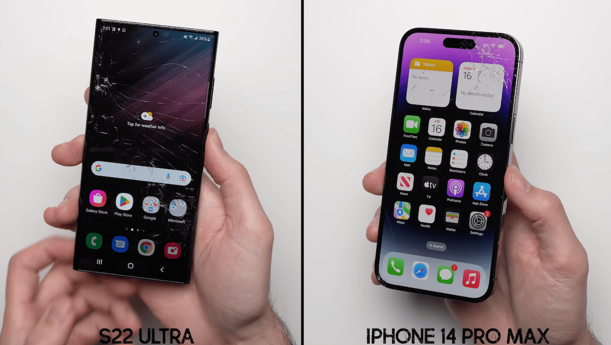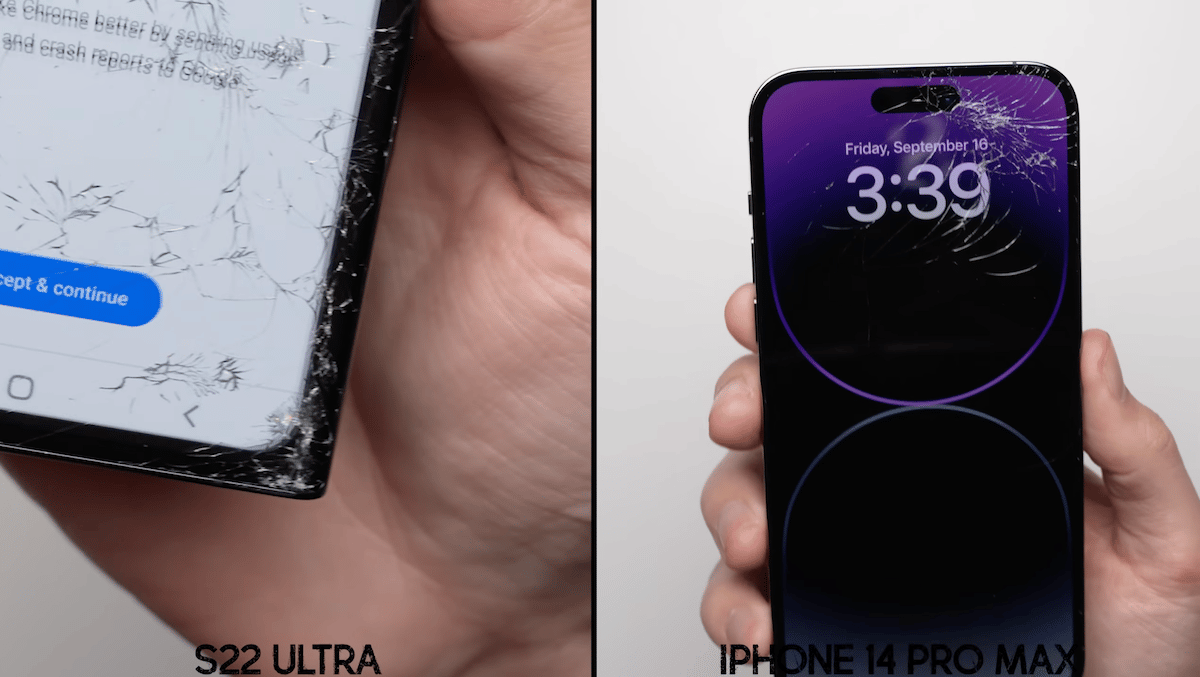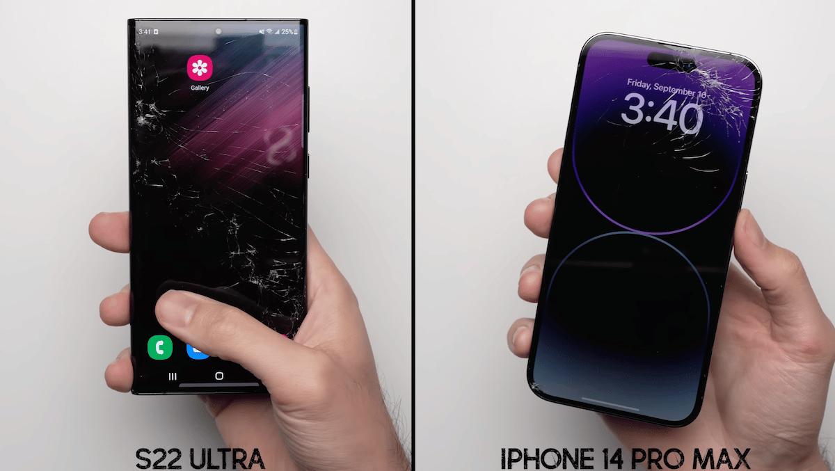 YouTuber @phonebuff teki vertailevan pudotustestin 6,7 tuuman iPhone 14 Pro Maxista Samsung Galaxy S22 Ultra -tapahtumaa vastaan tietääkseen, kuinka hyvin ne toimivat vahingossa tapahtuvilla putouksilla.