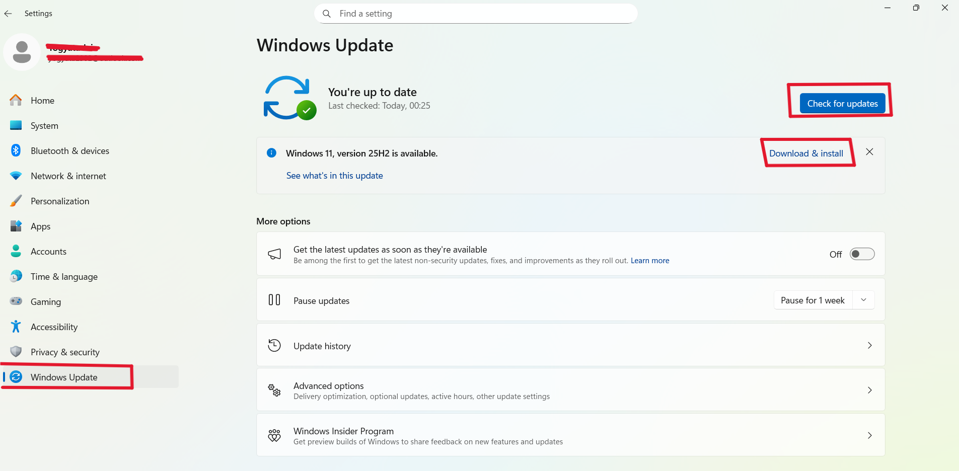 - Siirry Windows Update -sivulle ja tarkista päivitykset.