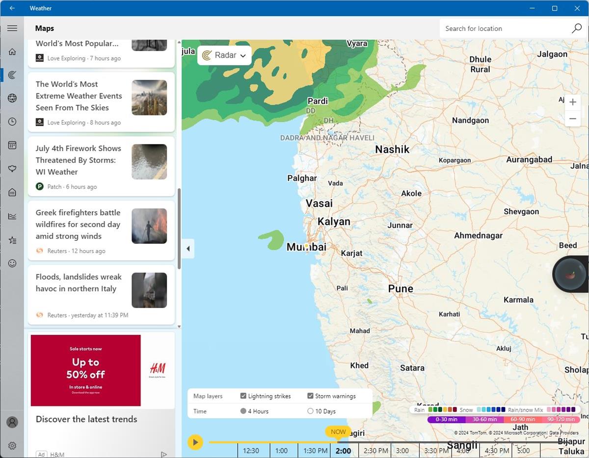 Microsoft Weather -sovellus näyttää mainokset jokaisella sivulla