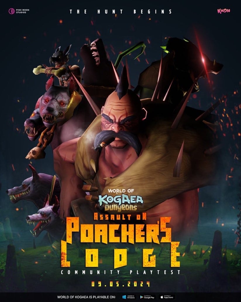 Suositun KMON -franchising -luojat isännöivät yhteisöä tulevalle matkapuhelimeen, Kogaea World of Kogaea. Tämä tapahtuma, jonka otsikko on ”Assault for Poachers 'Lodge”, on keskeinen askel 3D -avoimen maailman kehittämisessä ennen koko pelin julkaisua myöhemmin vuonna 2024. Pelaajat voivat osallistua Playtestiin ja auttaa muotoilemaan KMON -maailmankaikkeutta.