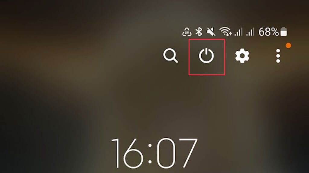 - Koska virtapainike ei toimi, pyyhkäise sovelluksen varjoa alas ja valitse virtakuvake. Valitse sittenKäynnistä uudelleenkäynnistääksesi puhelimen uudelleen.