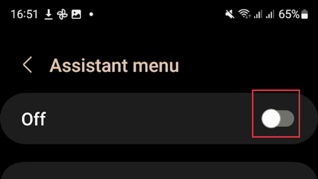 - NapautaAssistant-valikon pikakuvakeja kytke se päälle kääntämällä kytkintä.