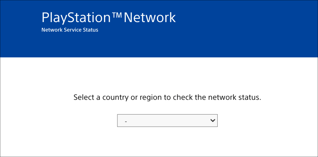 KäyttääPlayStation Network Service ToolTarkastellaksesi palvelun tilaa alueellasi. Valitse maasta tai alueesi avattavasta valikosta ja odota tulosta.