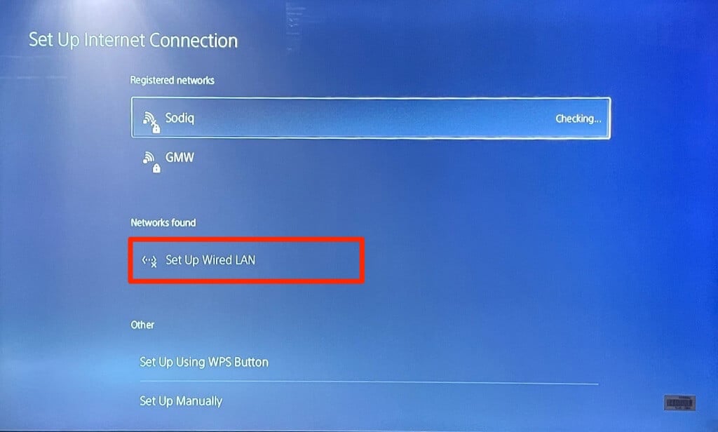Vaihda Ethernet -verkkoon, jos langattomassa yhteydessä on ongelma. Kytke Ethernet- tai LAN -kaapeli PS5: een ja aseta langallinen yhteys konsolin asetusvalikkoon.