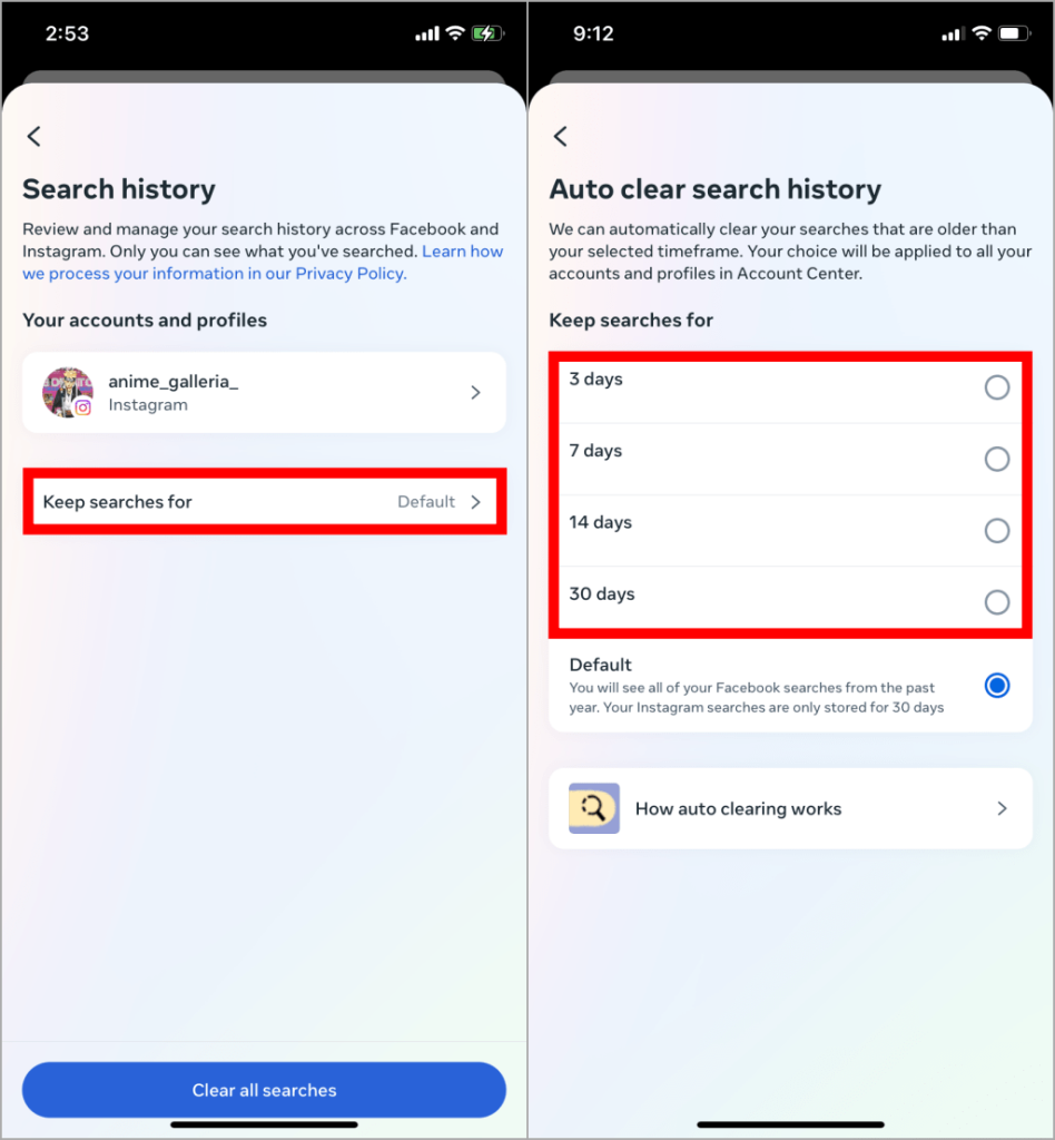 Jos haluat vaivatonta tapaa pitää Instagram-hakuhistoriasi puhtaana ja sotkea, menetelmä 5 on sinulle. Automaattisen selkeän hakuhistorian käyttöönoton ja asettamisen avulla voit varmistaa, että Instagram-syötteesi pysyy tuoreena ilman manuaalista ponnistelua.