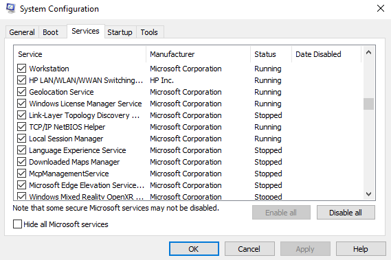 4. Valitse laatikko, joka sanoo"Piilota kaikki Microsoft -palvelut."