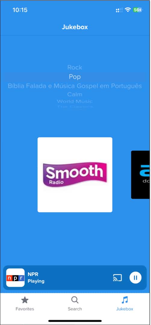 Vaikka voit kuunnella monia radioasemia, voit tarkistaa Jukebox -ominaisuuden, jos haluat kuunnella musiikkia. Eri tyylilajeja, kuten pop, rock, maa, latina ja monet muut, ovat saatavilla. Kun olet valinnut genren, voit valita tämän tyylilajin saatavilla olevista eri kanavista. Lisäksi äänenlaatu on sopiva radiojukeboxille. Lisäksi voit heittää tämän sovelluksen käyttämällä iPhonesta Google TV: hen, Chromecastiin tai laitteisiin, jotka tukevat valua.