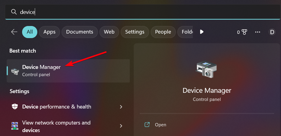 - TyyppiLaitehallintaHakupalkissa ja paina Enter.
