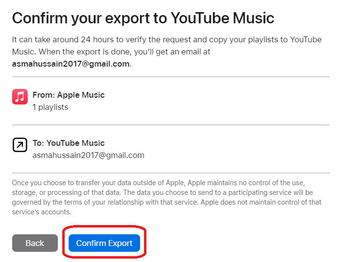 Siirtoprosessi voi viedä muutamasta minuutista useisiin tunteihin soittolistojen lukumäärästä ja koosta riippuen. Kun siirto on valmis, Apple lähettää sinulle vahvistusviestin. YouTube -musiikin kirjasto -välilehden löydät siirrettyjen soittolistojen.