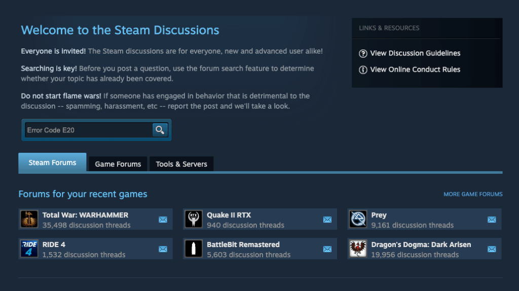 Ennen Steam -virhekoodin E20 korjaamista - Onko höyry alas?