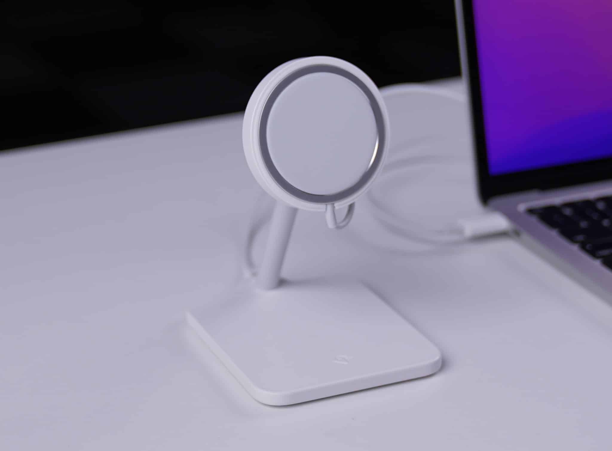 Forté on jälleen yksi Magsafe -laturi, joka sijaitsee kahdentoista etelään. Jalustalla on neliömuoto (neliöpohja pyöreillä reunoilla). Siinä on myös silikoni jalat, ja kun se yhdistetään painoon, ts. 0,9 kiloa/400 grammaa, voit odottaa, että jalusta on melko tukeva.