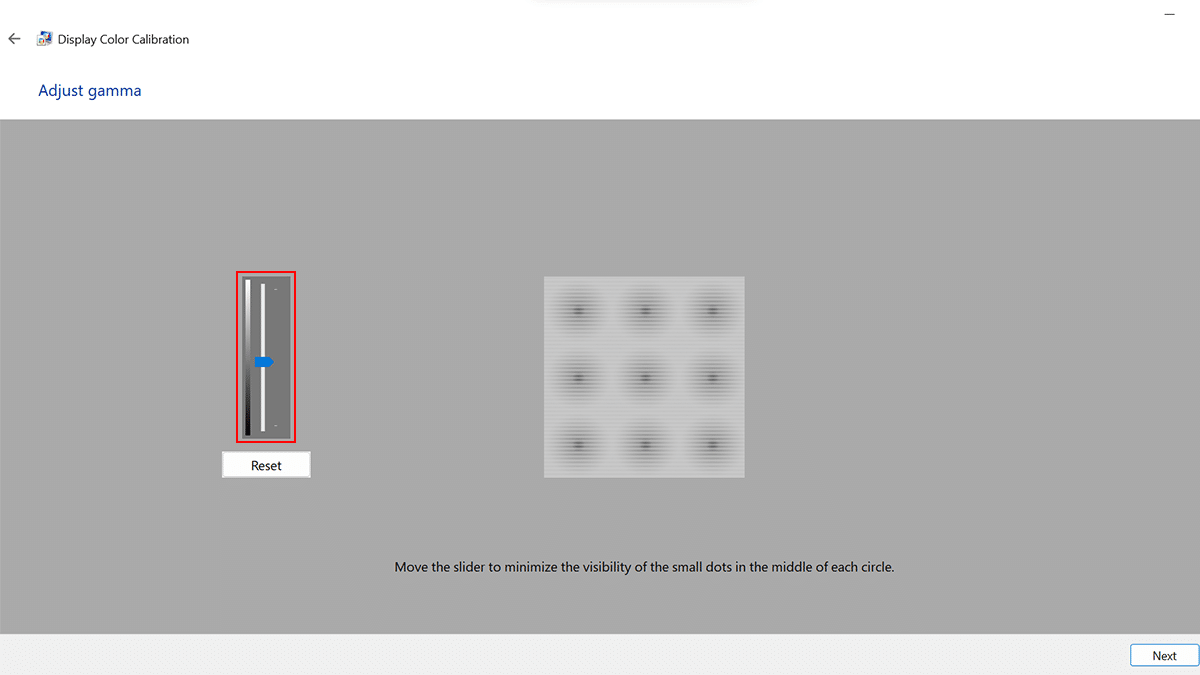 - Muuta liukusäädintä gamma -asetusta, kunnes pisteet ovat tuskin näkyviä.