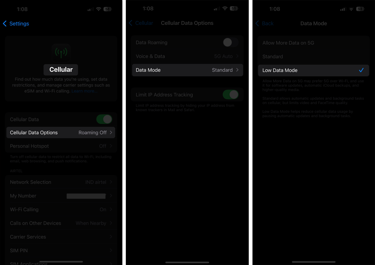 Otetaan käyttöön Low Data Mode matkapuhelinyhteyttä varten