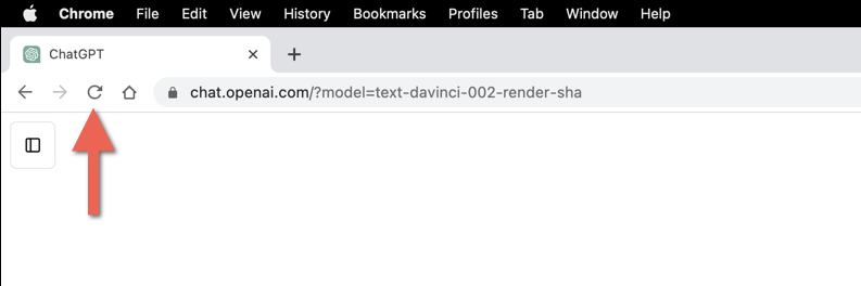 Jos se ei poista virhettä, lataa selain -välilehti uudelleen (tai painaHallintaTaiR -taiKomentoTaiR -) - Tämä toiminta päivittää ChatgPT -istunnon, yhdistää sinut palvelimiin ja puhdistaa väliaikaiset häiriöt.