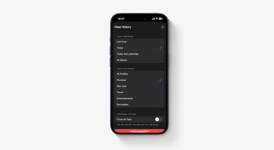 - Selkeä historiaasetusSafarissa ei muutu. Jos valitset tietyn aikataulun, sovellus muistaa ja pitää sen samana. Aikaisemmin selkeä historiaasetus palasi oletusarvoon, kun käyttäjät sulkivat sovelluksen.