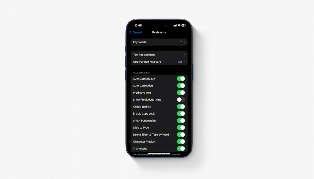 - Näppäimistöasetukset lisäsivät uuden ”show Predictive Online” -vaihteenennustavan tekstin kytkemiseksi/ pois päältä. Asetukset -sovellus> Yleinen> Näppäimistö> Näytä ennustava verkossa.
