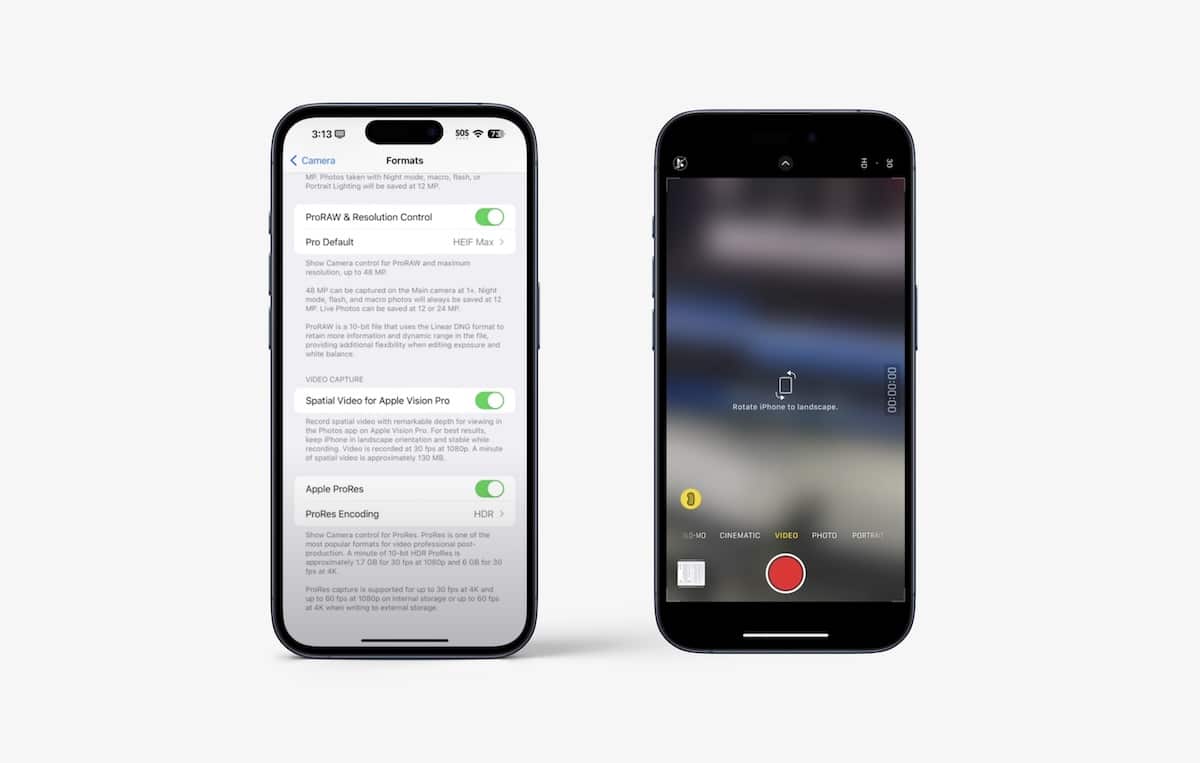 - Spatiaalinen video Vision Pro -ominaisuudelleon saatavana yksinomaan iPhone 15 Pro- ja iPhone 15 Pro Max -malleissa kamera -asetuksissa: Asetukset -sovellus> Kamera> Muoto> Spatial Video Vision Prolle. Uuden valinnaisen kameraominaisuuden avulla käyttäjät voivat tallentaa alueellisia videoita, joita voidaan katsella Apple Vision PRO -kuulokkeissa, joiden odotetaan julkaisevan vuoden 2024 alussa.