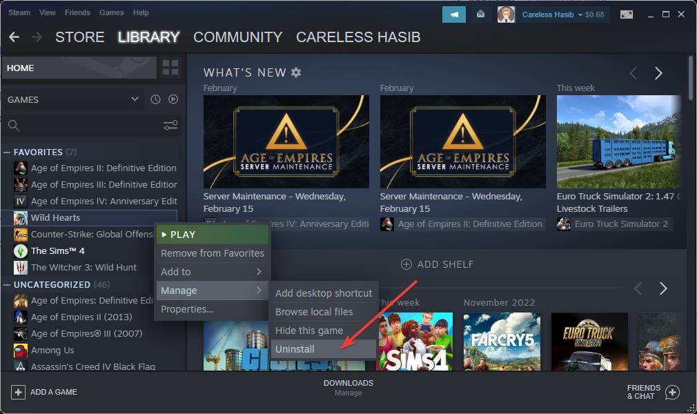 - Napsauta hiiren kakkospainikkeella jtkVillit sydämetja napsauta sittenAsennuksen poistaminen.