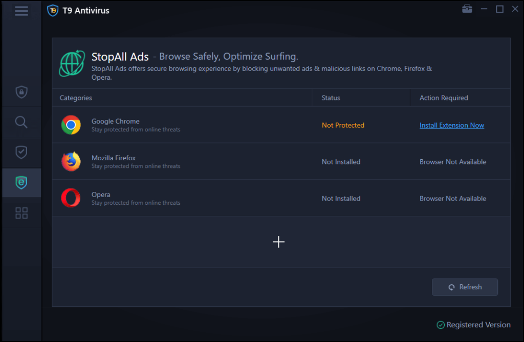Se jättää minimaalisen järjestelmän jalanjäljen, joten tiedostojen poistaminen ja muut järjestelmätoiminnot pysyvät nopeasti. Ja 24/7-tuella T9 Antivirus tukee kyberhyökkäyksiä. Haluatpa sitten suojata tietosi tai parantaa tietoturvaa, T9 Antivirus tarjoaa kattavan suojan. Se sisältää reaaliaikaisen suojauksen, haittaohjelmien suojauksen ja lisäturvatoimia.