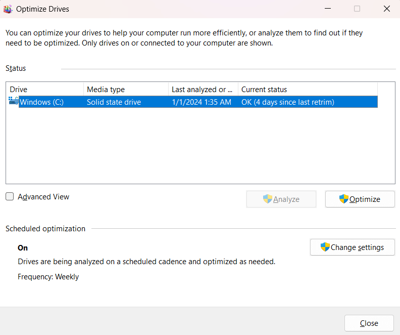 Vaihe 3: Napsauta "Optimoi" aloittaaksesi eheytysprosessin.