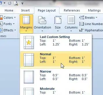 Jos jokainen Word 2010 -sovelluksessa luoma asiakirja vaatii 1 tuuman marginaalit, voi olla helpompaa asettaa ne oletussivun marginaaliksi jokaiselle luomillesi asiakirjalle. Voit tehdä tämän seuraamalla näitä vaiheita.