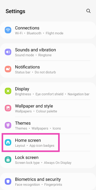 Vaihe 1:Mennä jhkAsetuksetja valitseKotinäyttö.