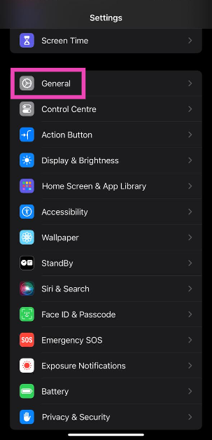 Vaihe 2:Siirry osoitteeseenAsetuksetja napautaKenraali.