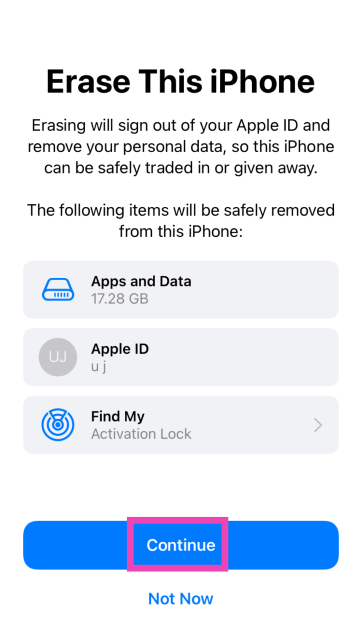 Vaihe 4:NapsauttaaJatkaaja kirjoitasalasannePalauttaa iPhone sen tehdasasetuksiin.