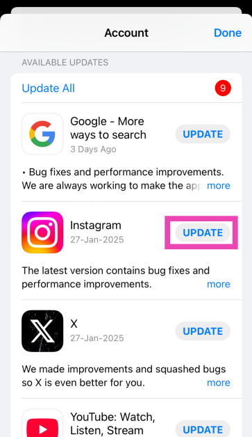 Vaihe 4:OsuaPäivittääPainike sovelluksen vieressä päivittääksesi sen uusimpaan versioon. Voit myös päivittää kaikki sovellukset kerralla lyömälläPäivitä kaikki.
