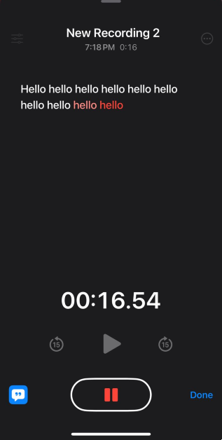 IPhonessa ei ole omaa natiivisovellusta äänen transkriptioon. Transkriptiotoiminto on upotettu äänimuistioihin ja muistiinpanoihin.