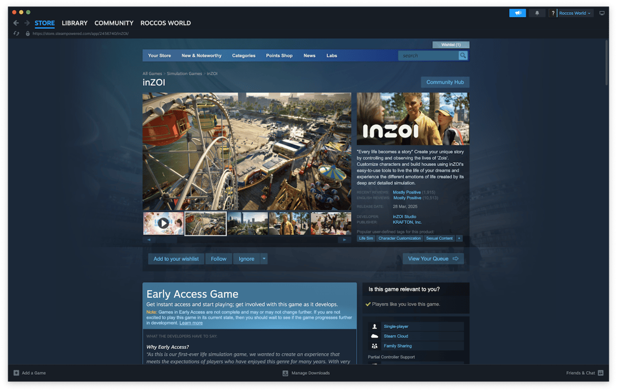 Aloitetaan täältä, jos et ole täysin varma, mikä peli on. Jos olet koskaan pelannut tai ollut Simsin fani, olet kuullut INZOI: sta, se on kuin seuraavan tason SIMS, hyperrealistinen, elämän simulointipeli, jota käyttävät Unreal Engine 5: n, jossa hallitset Zois-nimisen ainutlaatuisten virtuaalisten ihmisten elämää. Simsiin verrattuna se on realistisempi, sisäänrakennetulla modifioinnilla ja AI-tarinankerronnassa; Sillä on paljon potentiaalia, ja on ymmärrettävää, miksi niin monet ihmiset haluavat tietää kuinka pelata Inzoi Macilla.