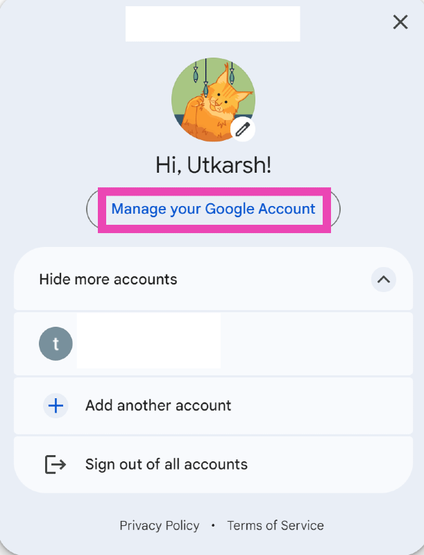 Vaihe 2:NapsauttaaHallitse Google -tiliäsi.