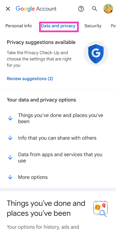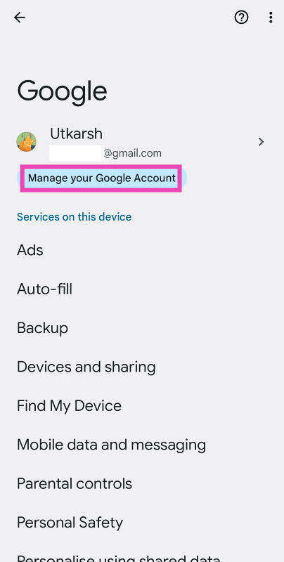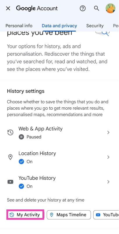 Mennä jhkAsetukset> Google> Hallitse Google -tilisija napauttaaMinun toimintani.