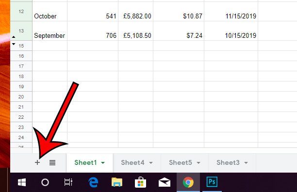 Kun luot uuden työkirjatiedoston Google Sheetsissä, siinä on oletuksena yksi laskentataulukko. Monissa tapauksissa tämä tulee olemaan hyvin, mutta jotkut laskentataulukon tarpeet sanovat, että lisäät lisää laskentataulukoita kyseiseen tiedostoon.