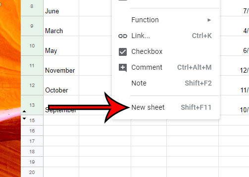 Pakkauksen pikakuvake lisätäksesi uuden laskentataulukon Google Sheetsissä onSHIFT + F11.