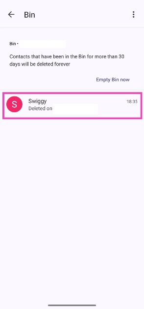 Toisaalta Android OEM: ien erillisissä kontaktisovelluksissa on omistettu kierrätysastia laitteen yhteystietoihin. Jos käytät Samsung -älypuhelinta, sinun ei tarvitse varmuuskopioida yhteystietojasi kunnostamista varten. Kaikki poistetut kontaktit siirtyvät kierrätysastiaan 30 päiväksi ennen kuin ne poistetaan pysyvästi.