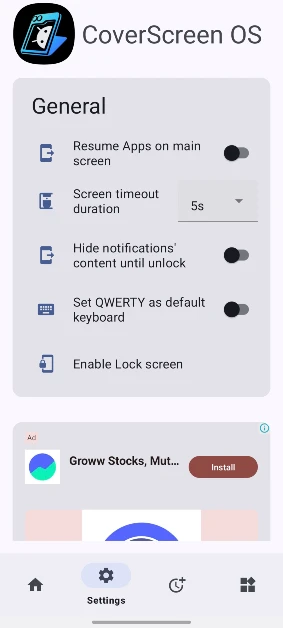 Jos multari ei ole vaikuttunut, voit aina tarkistaa Coverscreen -käyttöjärjestelmän. Tämän kolmannen osapuolen sovelluksen avulla voit käyttää kannen näytön sovelluslaatikkoa yksinkertaisella pyyhkäisyeleellä. Vaikka se ei luo uudelleen yhden käyttöliittymän estetiikkaa, se on paljon lähempänä todellista sovelluslaatikosta. Jos ostat premium -tilauksen, voit avata lisää ominaisuuksia maksimoidaksesi kannen näytön potentiaalin.