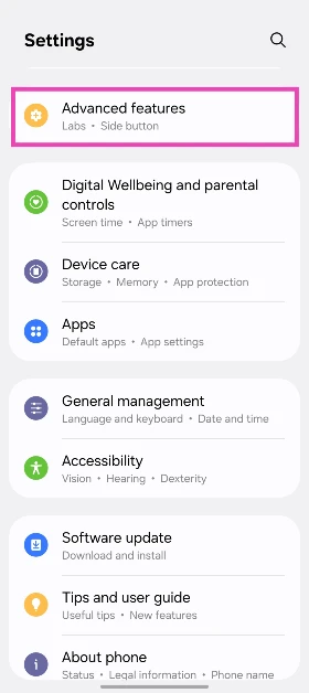 Vaihe 1:Mennä jhkAsetuksetja valitseEdistyneitä ominaisuuksia.