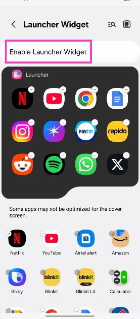 Mennä jhkAsetukset> Lisäominaisuudet> Labsja kytke kytkinkytkin päälle 'Sovellusten sallittujen sovellusten' vieressä. Lataa Samsung Good Lock Galaxy Storesta ja asenna MultWor -laajennus. Käynnistä laajennus ja meneI ♡ Galaxy Foldable> Launcher -widget. Valitse haluamasi sovellukset aloitusnäytöltä. Napauta 'Ota kantoraketti -widget', valitse MultSart ja napauta 'Launcher -widget'.