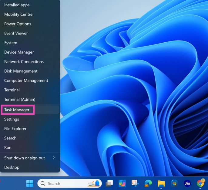 Vaihe 1:Napsauta hiiren kakkospainikkeellapäälläWindows-kuvaketehtäväpalkissa ja valitse Tehtävienhallinta.