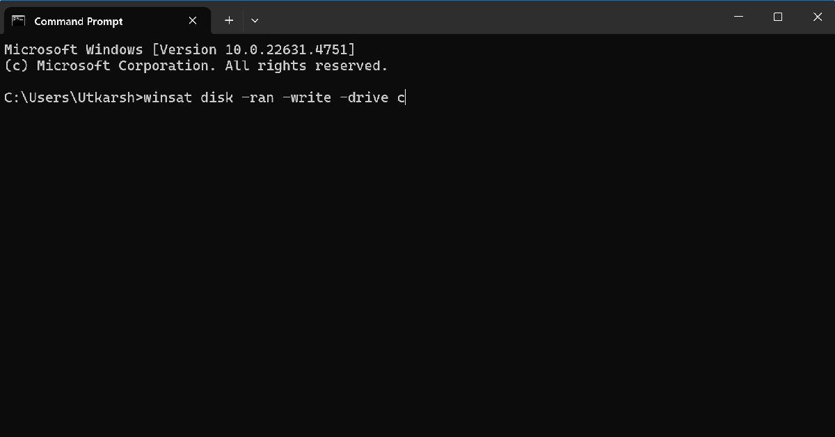 Tarkista SSD:n nopeus käynnistämällä komentokehote järjestelmänvalvojana ja kirjoittamalla "winsat levyasema [aseman nimi]'.