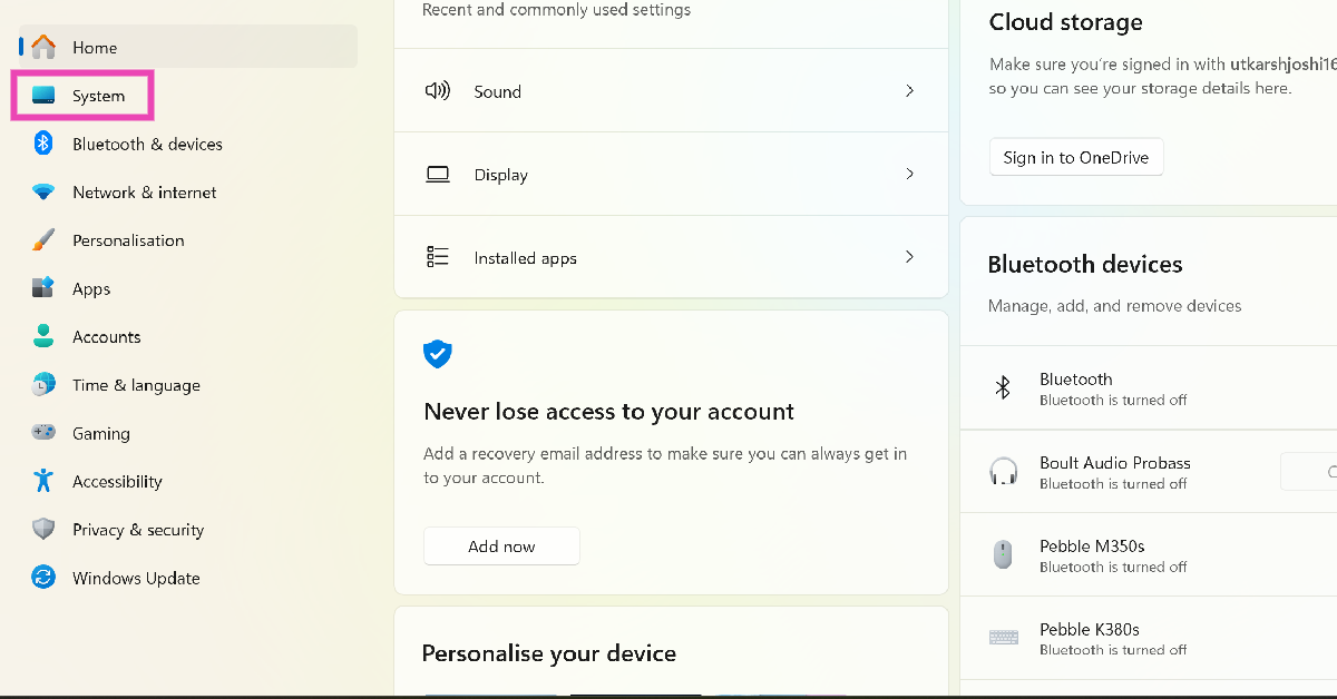 Vaihe 1:Mennä jhkAsetuksetja valitseJärjestelmä.