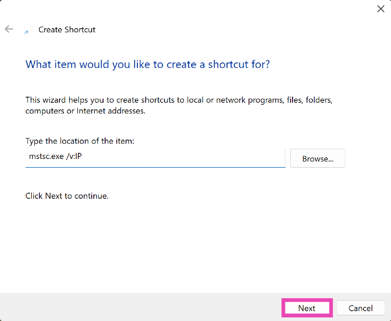 Luo työpöydän pikakuvake Desktop Connection -sovellukseen Windows 11: ssä