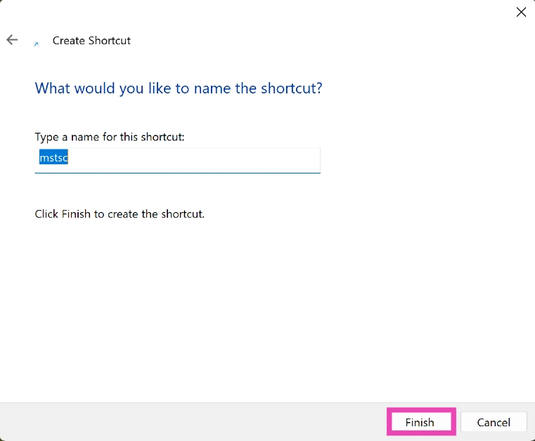 Vaihe 4:Kirjoita pikakuvakkeen nimi ja painaViimeistely.