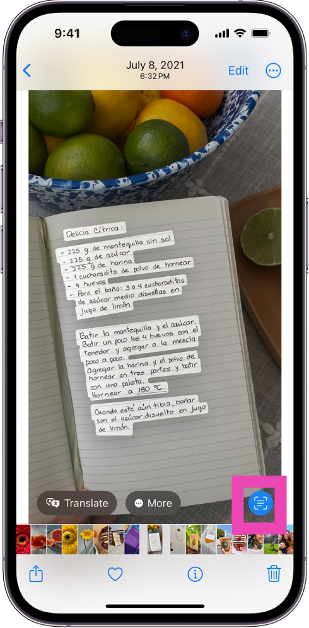 Käytä live-tekstiä alkuperäisessä Kuvat-sovelluksessa