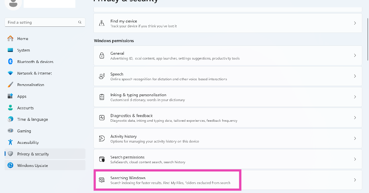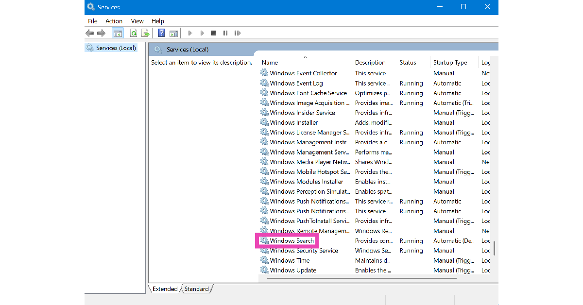Vaihe 3:Vieritä alas ja kaksoisnapsautaWindows -haku.