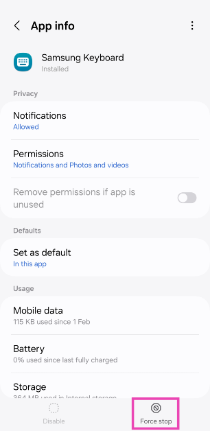 Siirry osoitteeseenAsetukset> Sovellukset, valitse sovellus, paina Pakota pysäytys ja vahvista valintasi ponnahdusikkunassa.