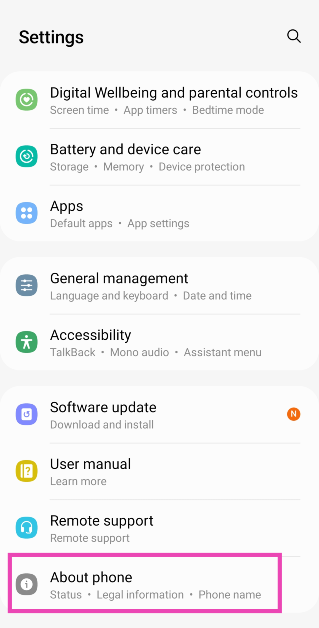 Vaihe 1:Siirry osoitteeseenAsetuksetja valitseTietoja puhelimesta.