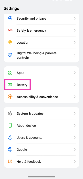 Vaihe 1:Siirry osoitteeseenAsetuksetja valitseAkku.