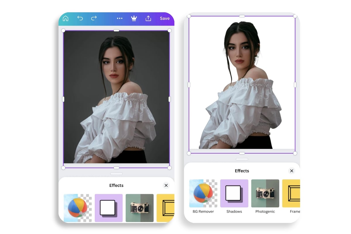 Canva on monipuolinen kuvanmuokkaussovellus, jolla on monia ominaisuuksia. Sen älykäs taustahahmostimen työkalu poistaa ei -toivotut taustat havaitsemalla automaattisesti päähenkilön tai esineen. Ja voit käyttää harjatyökalua kuvan manuaalisesti.